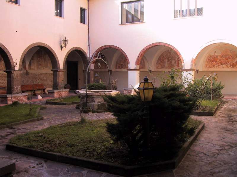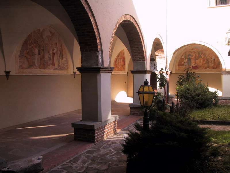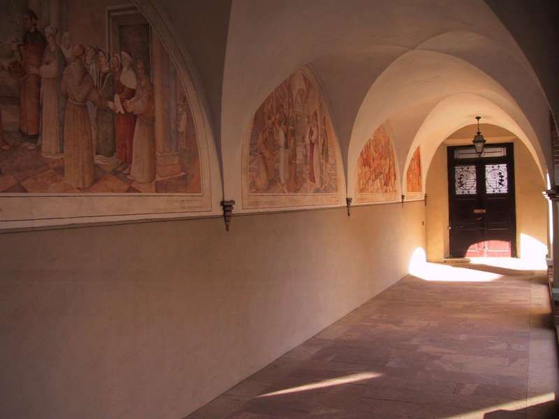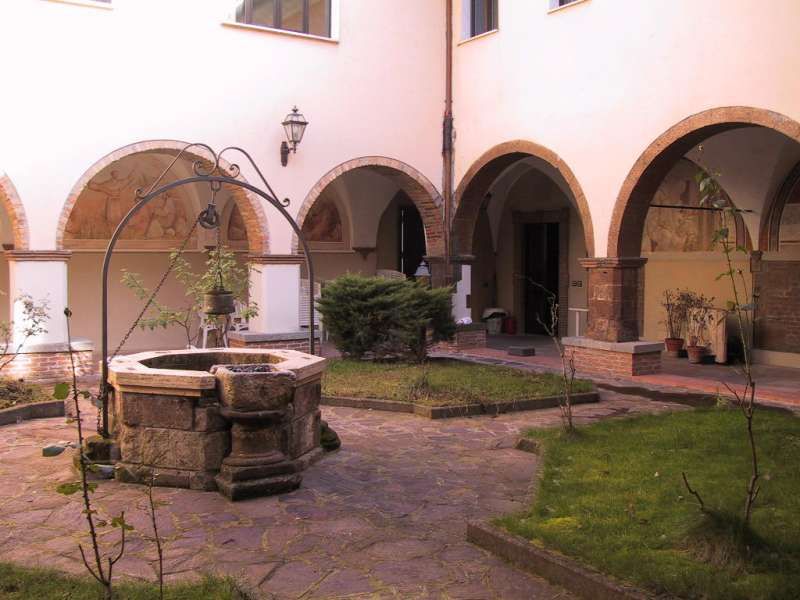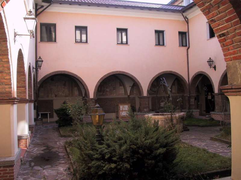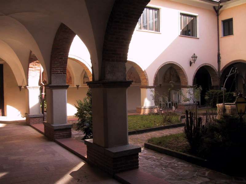 il chiostro, con decorazioni seicentesche che rappresentano scene della vita e dei miracoli di San Francesco , Il Convento, meta di pellegrinaggi dei fedeli di Sant’Antonio da Padova di cui conserva un dito, nel ‘700 venne restaurato e poi chiuso durane l’occupazione napoleonica. Restituito ai frati alla fine dell’800 vene quasi completamente distrutto dai bombardamenti della seconda guerra mondiale. Negli anni ’50 furono intrapresi dei lavori di ricostruzione e la chiesa del convento venne riedificata in una posizione diversa dall’originale