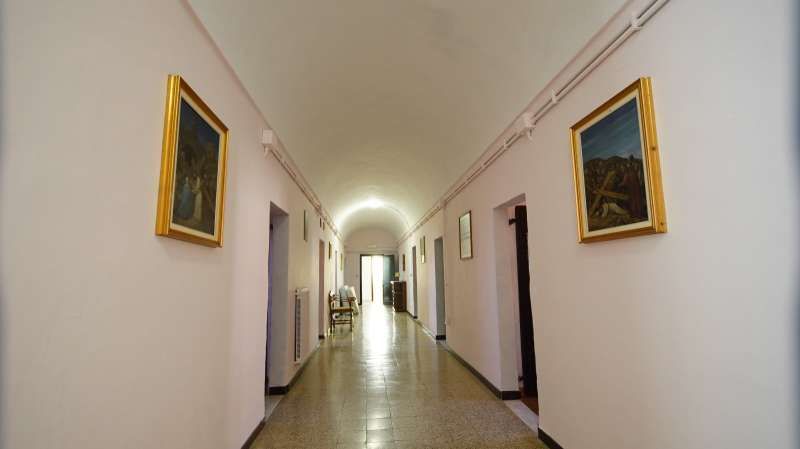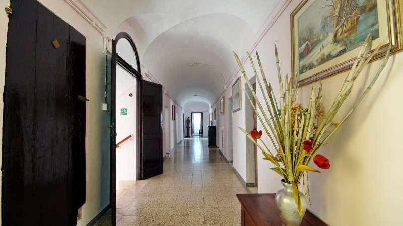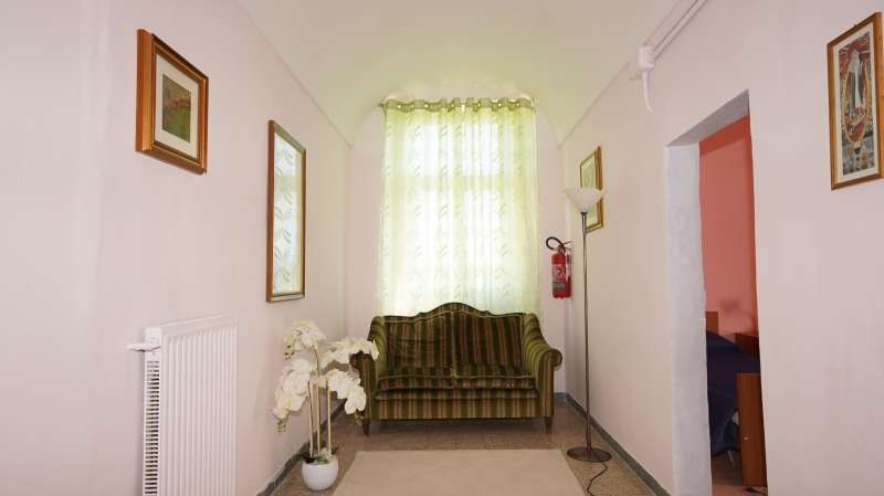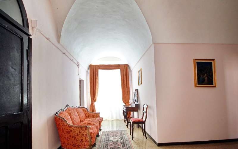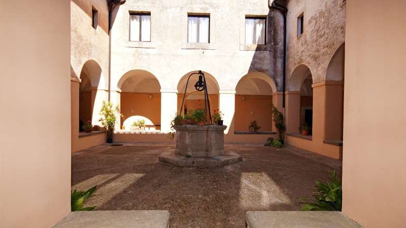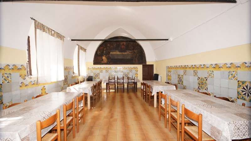 Convento francescano del 1600 con chiesa e ampio sagrato con mura di cinta e obelisco, sagrestia e coro in legno originale nel retro della chiesa. Convento con grande chiostro e pozzo con acqua al centro. Dormitorio posto al primo piano formato da 20 celle con porte e finestre originali degli anni della costruzione disposte in 4 corridoi lunghi che vanno a formare un quadrato con vari salotti ben arredati con mobili antichi tendaggi ecc, agli angoli del quadrato. Le celle con letti e armadi utilizzabili per camerini attori, sartoria, trucco, parrucco bagni per ospiti e staff cinematografico. Refettorio completo di 5 lunghi tavoli e oltre 40 posti comodi a sedere. Cucina industriale e soggiorno adiacente ad essa. Salone ampio con mobili in arte povera e grande tavolo per ogni uso. Soffitta antica e stanze al piano 3 per altri utilizzi. Grande parco con giardino, ampio parcheggio al chiuso per auto e mezzi cinematografici. Acqua energia elettrica ecc, e guardiani. Possibilita di parcheggi anche su via Roma chiudibile al traffico. Location molto comoda e ampia.