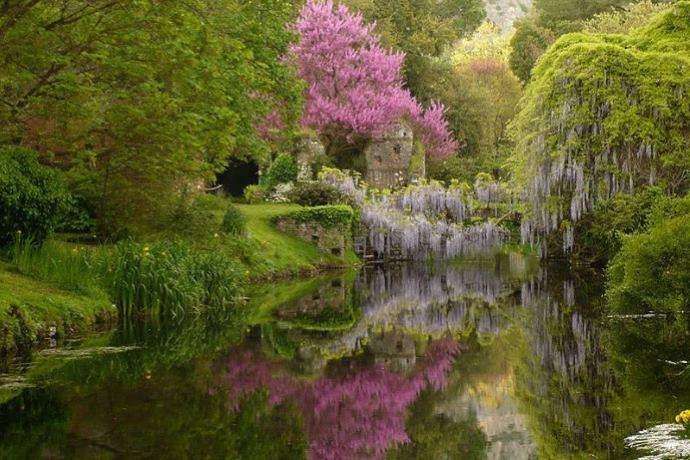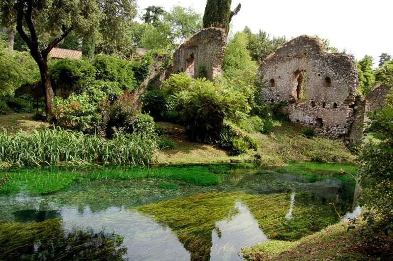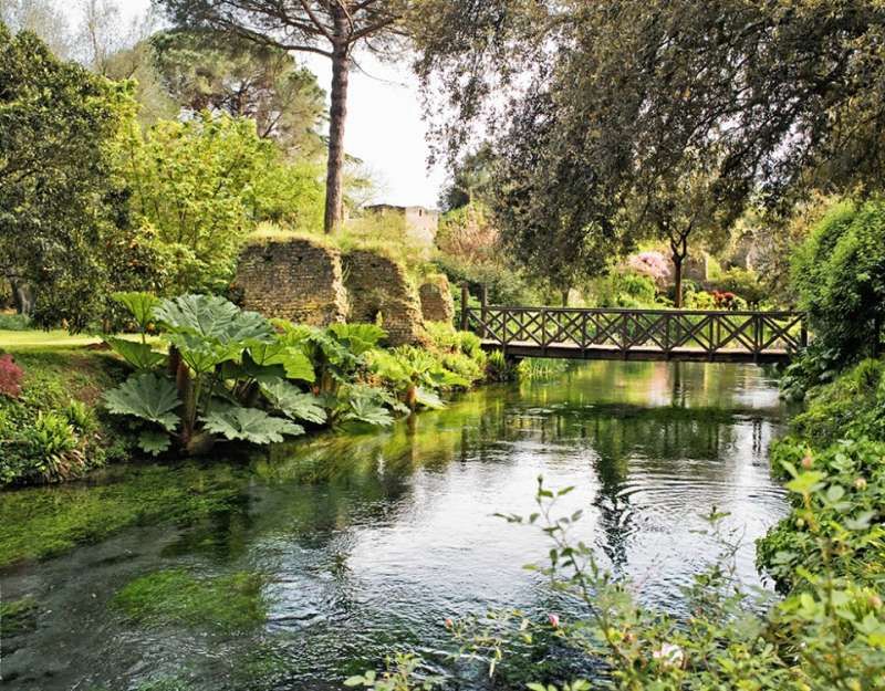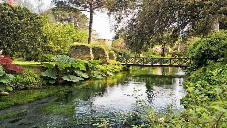Un Giardino all’inglese, con una piccola parte all'italiana “hortus conclusus”, si estende tra i resti della medioevale cittadina di Ninfa ed è attraversato dall'omonimo fiume. A partire dagli Anni '20 fu bonificato e restaurato dai Caetani.
