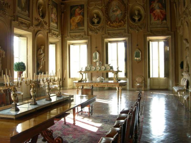 La sua costruzione fu eseguita su progetto di Antonio da Sangallo, che ne volle fare la propria abitazione, ottenendo nel 1542 il terreno . Il palazzo ospita alcuni dei cicli più significativi del manierismo, con opere di Francesco Salviati, a cui si devono gli affreschi del salone dei Mappamondi, Pietro da Cortona e Jacopino del Conte. Viene utilizzato per il film La Grande bellezza