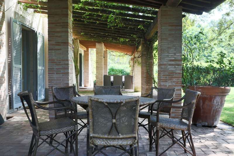 La villa offre spazi ampi, ha una metratura di circa 500 mq su due livelli, è composta da 3 camere matrimoniali con bagno, 2 camere singole con bagno privato ciascuna ed una camera doppia con bagno per il personale. I bagni sono spaziosi e ospitano sia vasca che comode docce: in una delle camere matrimoniali è presente anche un bagno con cabina armadio e sauna dove potersi rilassare. Villa Isabella dispone di portici ideali per pranzi e colazioni, cene informali o formali, e per momenti di puro relax.