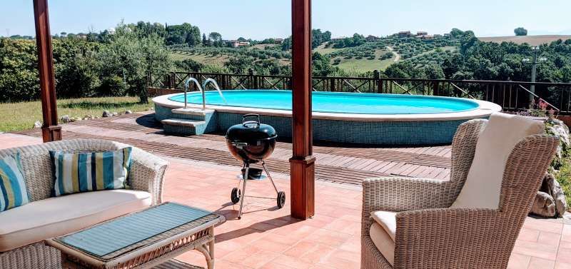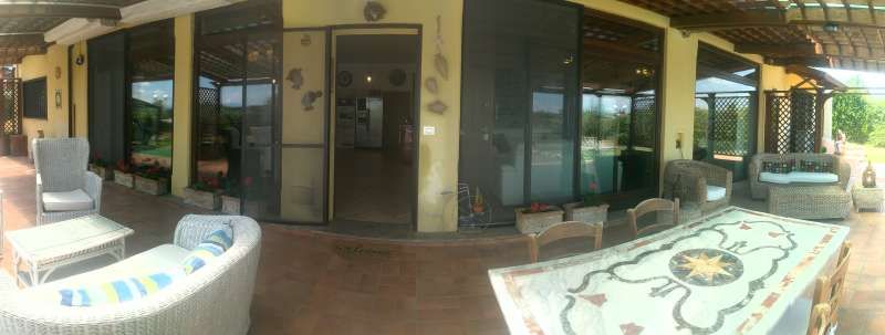 Meravigliosa villa di tre piani con vista libera su vallata di ulivi, piscina panoramica e interni con mobili di prestigio. Il primo piano è un grande open space di 100 mt quadri circa, con salotto, cucina e sala pranzo completamente panoramico sulla piscina e la campagna (muro a vetrate di 10 metri circa). Ampio portico in legno, anch'esso panoramico.