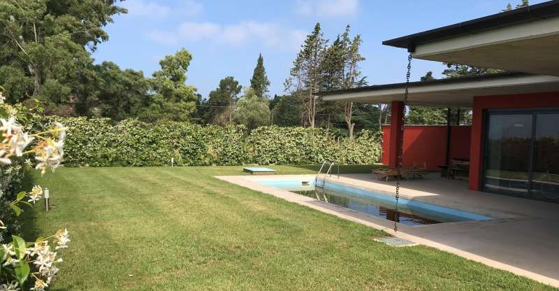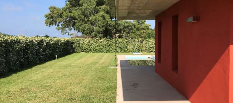 La villa di recente costruzione in chiaro stile californiano con la sua forma ad elle e la piscina incastonata offre una vista verso il panorama del promontorio del Monte Circeo ed è costituita da doppio salone, una cucina interamente attrezzata, una piscina ad uso esclusivo con un ampio portico e barbecue esterno, due camere matrimoniale con armadiatura mentre la terza camera ha 4 posti letto ed un angolo studio. L'ampio viale di accesso condente il parcheggio di numerose macchine e furgoni.