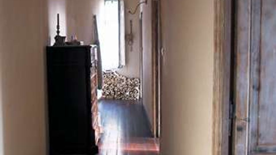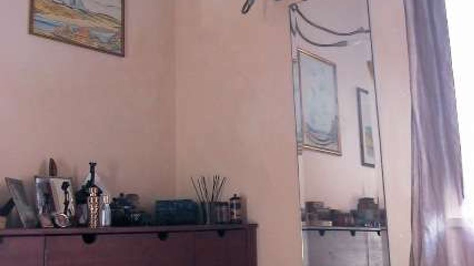settanta metri quadri circa, con un corridoio di otto metri che ha alla sua destra le varie camere; 1) tinello/cucina/bagno; 2) camera da letto; 3) salotto.