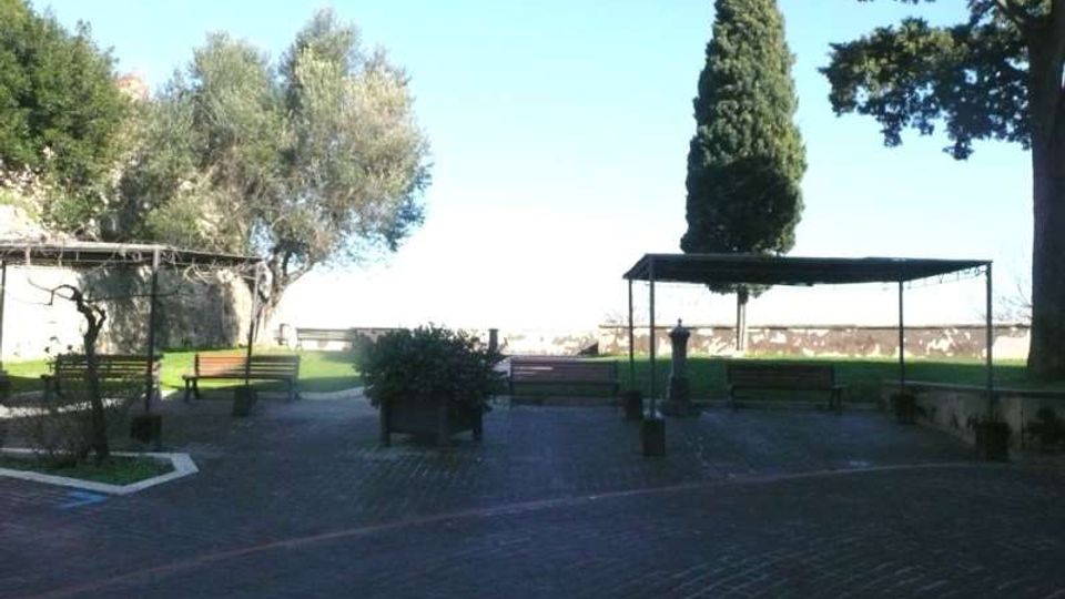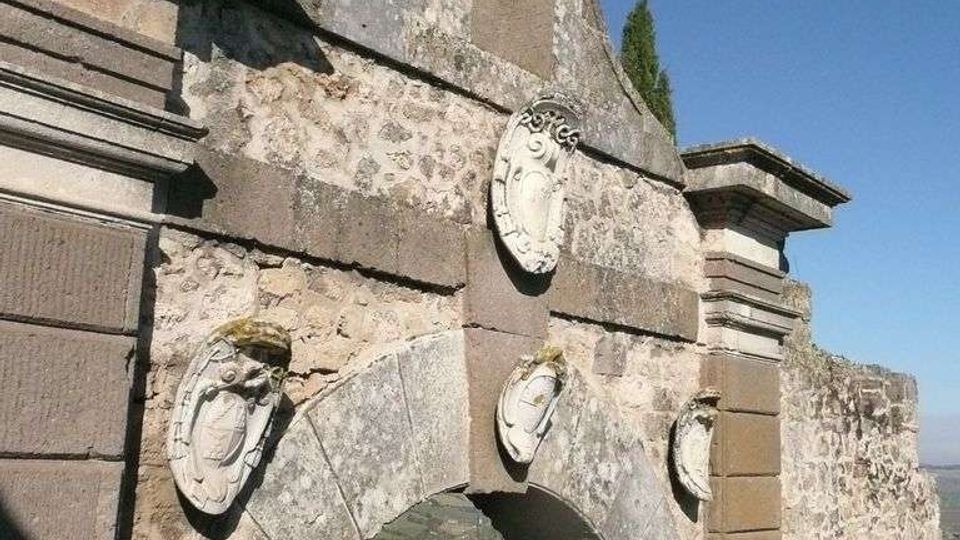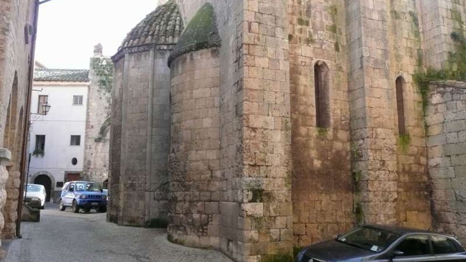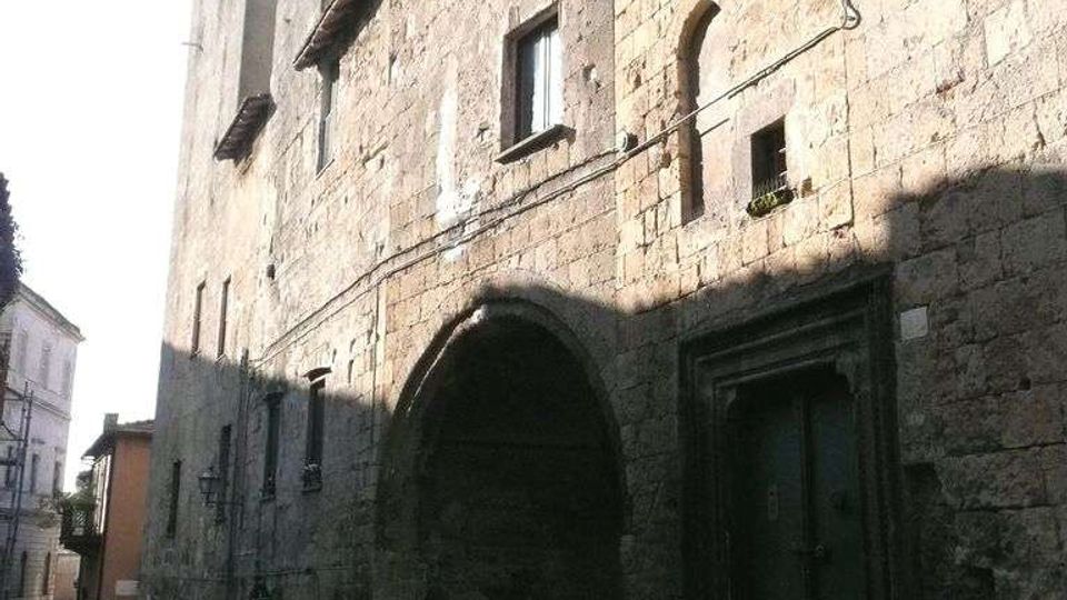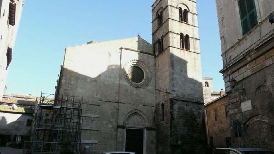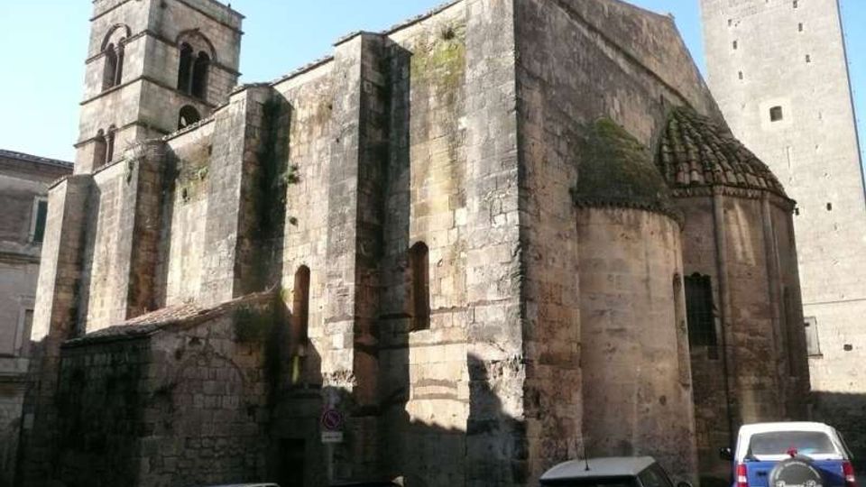 Scorcio particolare in stile medioevale. É presente la chiesa di San Pancrazio (edificata nel XIII secolo, romanico-gotica, campaniletto con due ordini di bifore romaniche) e torri. Veduta facciata laterale della chiesa di San Pancrazio.