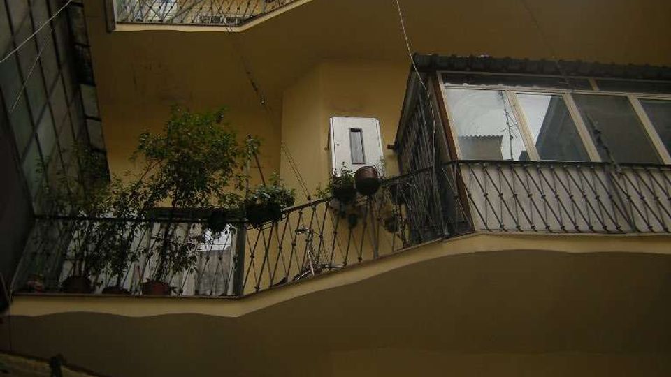 Ampio appartamento anni '50 con verandina su cortile, parati e servizi d'epoca