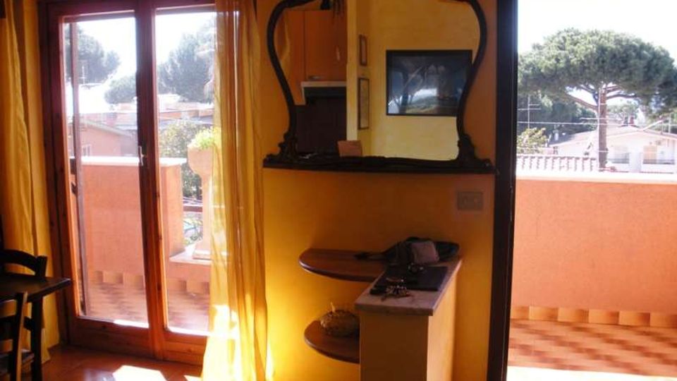 Appartamento sito in Anzio (Rm) composto da soggiorno con A.C., bagno con vasca, camera da letto con letto a castello, giardino, (Tot 40 mq), ingresso autonomo, vista mare.