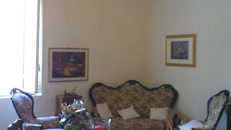 Appartamento completamente restaurato mantenendo le caratteristiche originali , mobili, porte,finestre, soffitti affrescati, libri e soprammobili del vecchio proprietario la proprietà comprende un orto con coltivazione di agrumi e del pizzutello (uva tipica) con possenti criptoportici romani all’interno dei quali ci sono diversi locali da 40/60/100 mq.