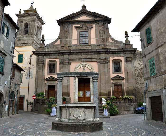 Borgo storico collinare disposto lungo un crinale, con case addossate in pietra e mattoni a vista e tetti in coppi, immerso tra fitta vegetazione e pendii boscati. I vicoli sono stretti e atmosferici, punteggiati da scale esterne, lampioni, vasi di fiori e cavi sospesi tra le facciate, offrendo un’ambientazione residenziale autentica e intima. Una piccola piazza ospita una chiesa in pietra e intonaco rosa con campanile laterale e una fontana ottagonale in pietra al centro, ideale come fulcro scenografico per scene di vita di paese e contesti culturali.