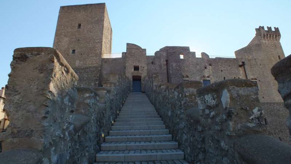 Il Castello, facendo corpo con la roccia, si pone sulla parte più alta della collina di Sant’Angelo. Tutt’intorno, seguendo le curve di livello, si sviluppa l’antico e suggestivo borgo medievale.