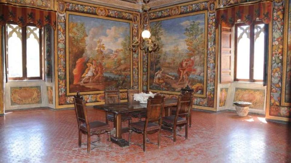 La parte più antica del Castello Massimo di Arsoli risale al X sec.; nei vari secoli verranno apportate molte modifiche secondo i gusti dell’epoca: i saloni con gli affreschi cinquecenteschi attribuiti ai fratelli Zuccari, il grande salone affrescato da Marco Benefial nel ‘700, l’ameria di gusto neogotico, il grande parco con i seicenteschi giardini all’Italiana, il giardino pensile, le camere rivestite in boiseries e tele dipinte.