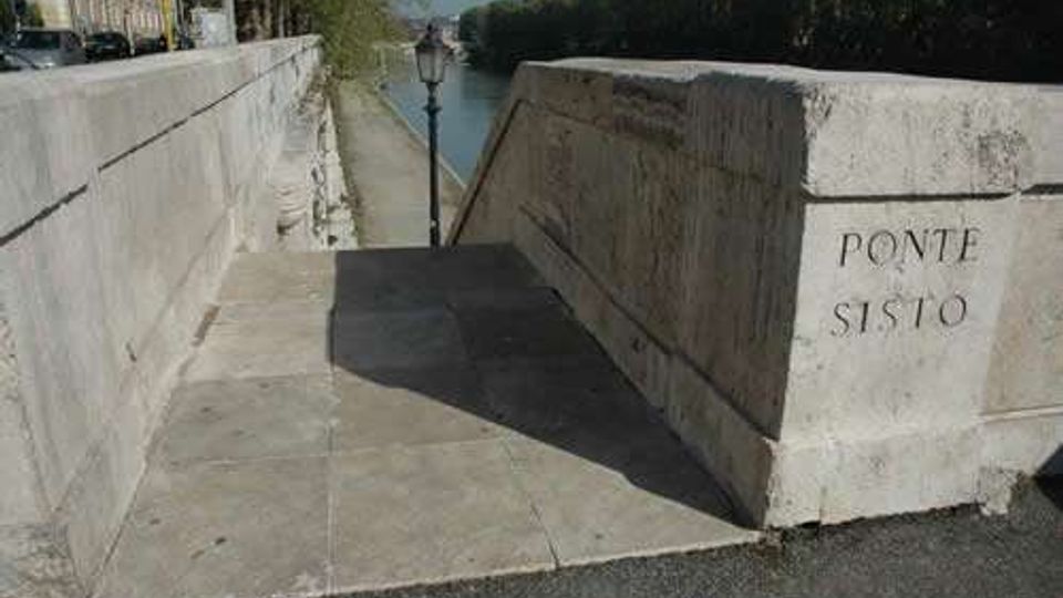 In prossimità del Giubileo del 1475 per agevolare il flusso dei Pellegrini verso il Vaticano, papa Sisto IV il 29 aprile 1473 pose la prima pietra per il rifacimento dell'antico ponte di Agrippa in disuso: poi ridenominato Ponte Sisto. Il ponte consta di 4 arcate con al centro un grosso foro rotondo, che i romani chiamano 'Occhialone', il quale funzionava come idrometro: quando l'acqua passava di lì c'era il pericolo di una piena del fiume. Autrice: Maria Dahlberg