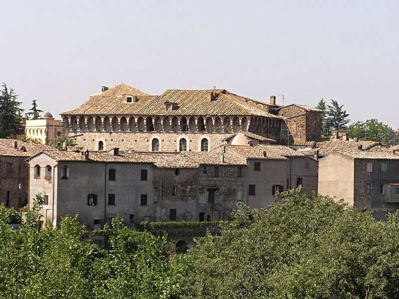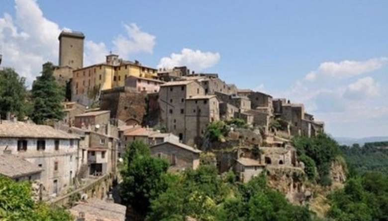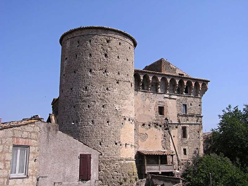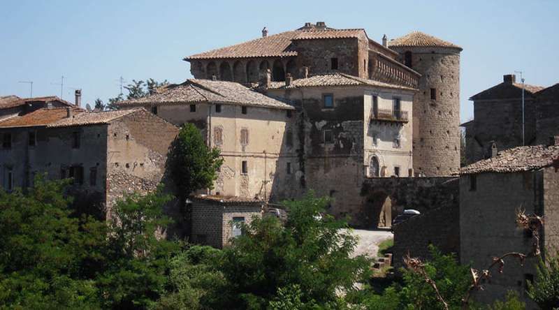 Borgo storico residenziale arroccato su un crinale collinare, composto da case in pietra addossate con tetti in coppi e dominato da un complesso medievale fortificato con grande torre cilindrica merlata, loggiato ad arcate e passaggi ad arco, oltre a una chiesa con campanile a guglia. L’insieme si affaccia su una valle verde con alberi, colline e profili montuosi all’orizzonte, offrendo panoramiche ampie e un’atmosfera autentica e senza tempo adatta a riprese storiche e di paese. Situato in località Sipicciano, nel comune di Graffignano (provincia di Viterbo, Lazio).